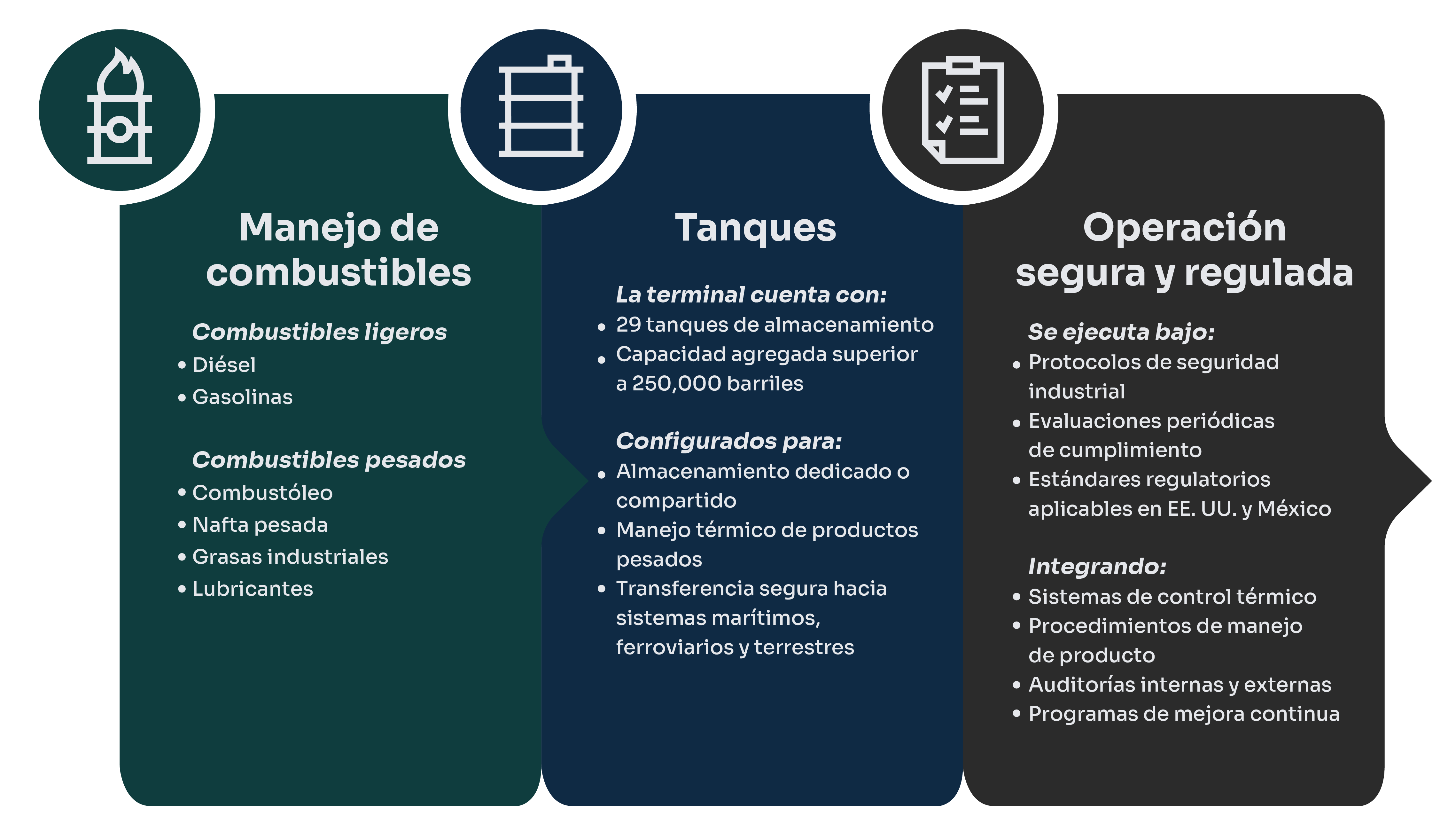 Somos una infraestructura crítica para el flujo de energía seguro, confiable y eficiente. Diseñamos, operamos y desarrollamos terminales y capacidades de almacenamiento que conectan la producción con los mercados, asegurando continuidad operativa, resiliencia logística y acceso eficiente a la energía.